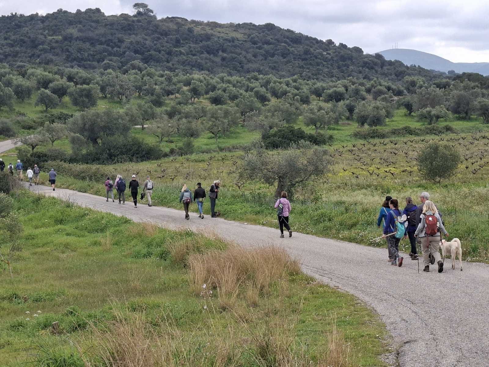 We hike through a valley towards Kleisoura, then across a lovely plain, past olive groves, and uphill to Exochiko.