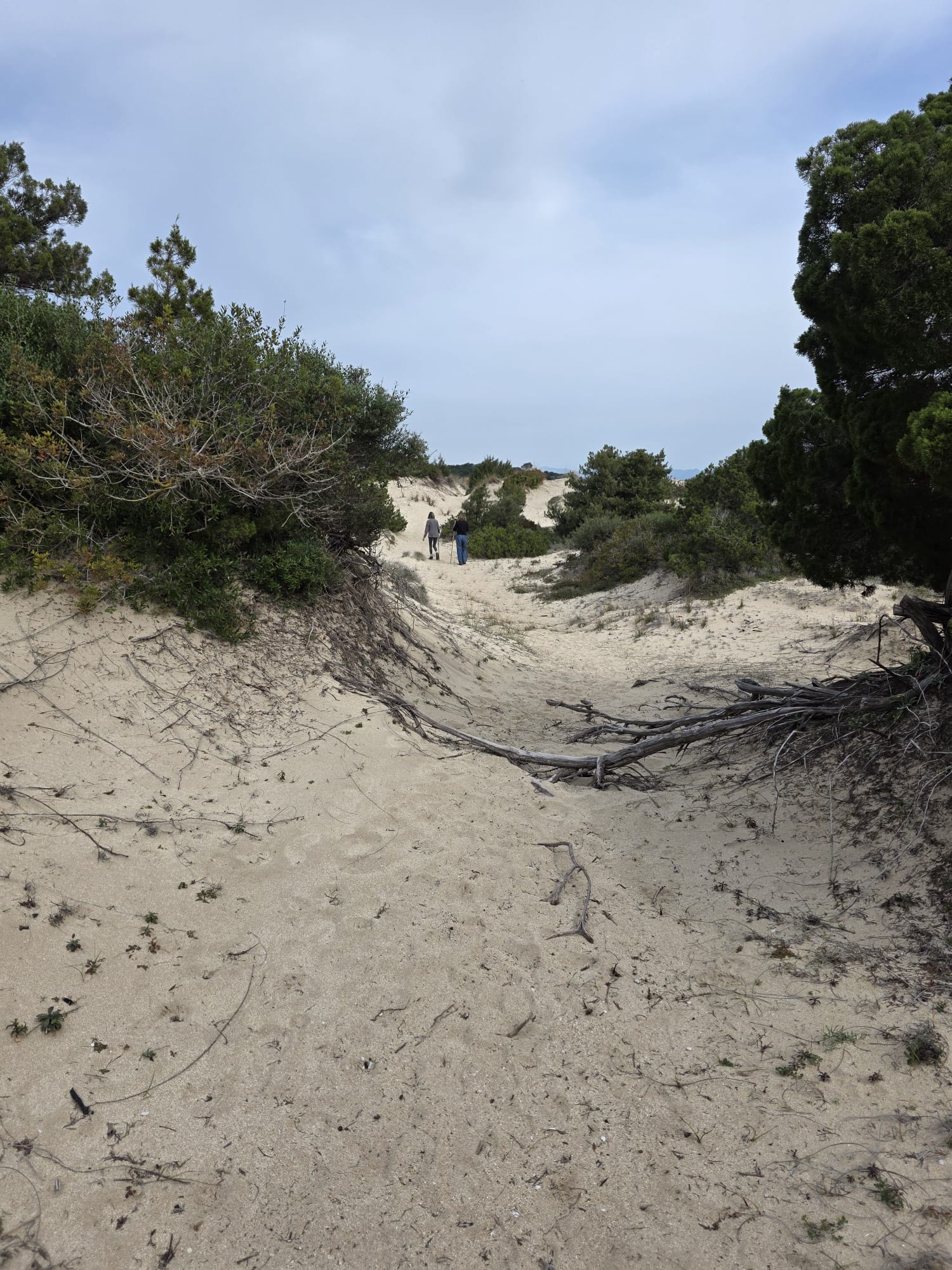 We walk back the same way. Afterwards the route is completely flat over easy-to-walk sandy paths and a small stretch of beach.
