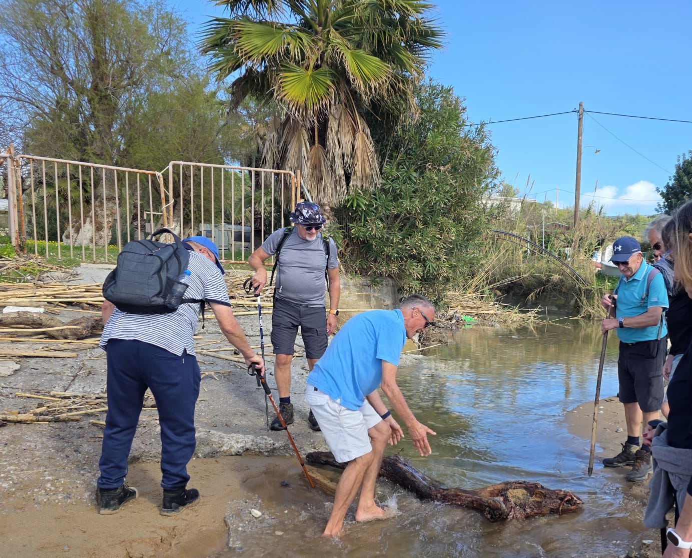 After weeks of rain, some sections were very wet and, in some places, impassable. Nevertheless, we found alternative solutions and were all able to enjoy a drink together in a very rustic Kafenion in Finikounda.